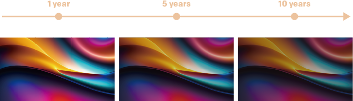 Tilføjelse af et lag af materiale med bred farveskala på baggrundsbelysningsperlerne resulterer i et renere udvalg af baggrundsbelysningsfarver sammenlignet med blå baggrundsbelysningskilder. En bredere båndbredde af hvidt lys giver i sidste ende mere realistisk farve og ensartethed.